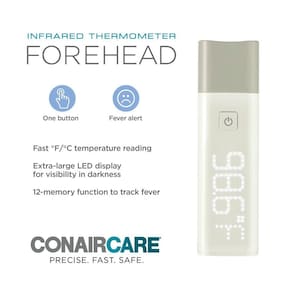 TERMÔMETRO ELETRÔNICO CLÍNICO: O termômetro infravermelho é aprovado pela FDA para uso doméstico e profissional. Este termômetro mede com precisão a temperatura da testa. Armazena até 12 leituras e tem Fever Alert para indicar febres de baixo e alto grau.