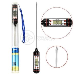 Termômetro digital para alimentos com desligamento automático. Mede a temperatura de alimento em graus célsius e fahrenheit com extrema precisão e rapidez. Perfeito para medir a temperatura de prato em banho maria no forno e outros. Seu display em LCD facilita a visualização das informações de modo claro e nítido junto de seu material de alta durabilidade e resistência que garante uma vida útil muito mais longa e durável para o produto.