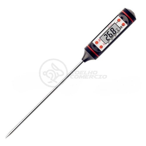 Termômetro digital para alimentos com desligamento automático. Mede a temperatura de alimento em graus célsius e fahrenheit com extrema precisão e rapidez. Perfeito para medir a temperatura de prato em banho maria no forno e outros. Seu display em LCD facilita a visualização das informações de modo claro e nítido junto de seu material de alta durabilidade e resistência que garante uma vida útil muito mais longa e durável para o produto.