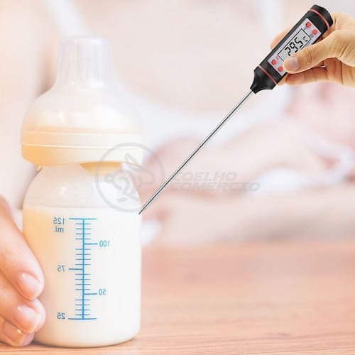 Termômetro digital para alimentos com desligamento automático. Mede a temperatura de alimento em graus célsius e fahrenheit com extrema precisão e rapidez. Perfeito para medir a temperatura de prato em banho maria no forno e outros. Seu display em LCD facilita a visualização das informações de modo claro e nítido junto de seu material de alta durabilidade e resistência que garante uma vida útil muito mais longa e durável para o produto.Mede de -50C a +300C