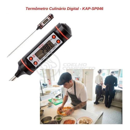 Termômetro Culinário Cozinha Digital Com Espeto Alimentos E Líquidos Mede -50c A +300c Presente Dia Dos Namorados