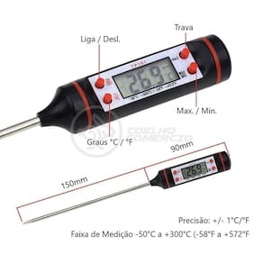 Termômetro Culinário Cozinha Digital Mede -50ºc A +300ºc