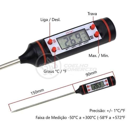 Termômetro Culinário Cozinha Digital Mede 50ºc A +300ºc