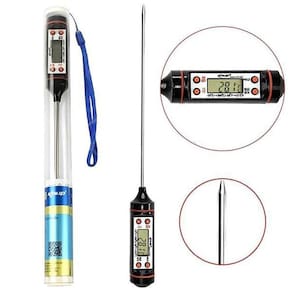 Mede a temperatura de alimento em graus célsius e fahrenheit com extrema precisão e rapidez. Perfeito para medir a temperatura de prato em banho maria no forno e outros. Seu display em LCD facilita a visualização das informações de modo claro e nítido junto de seu material de alta durabilidade e resistência que garante uma vida útil muito mais longa e durável para o produto.