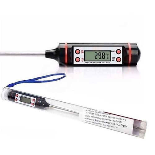 Mede a temperatura de alimento em graus célsius e fahrenheit com extrema precisão e rapidez. Perfeito para medir a temperatura de prato em banho maria no forno e outros. Seu display em LCD facilita a visualização das informações de modo claro e nítido junto de seu material de alta durabilidade e resistência que garante uma vida útil muito mais longa e durável para o produto.