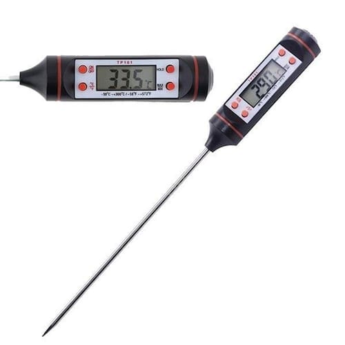 Mede a temperatura de alimento em graus célsius e fahrenheit com extrema precisão e rapidez. Perfeito para medir a temperatura de prato em banho maria no forno e outros. Seu display em LCD facilita a visualização das informações de modo claro e nítido junto de seu material de alta durabilidade e resistência que garante uma vida útil muito mais longa e durável para o produto.