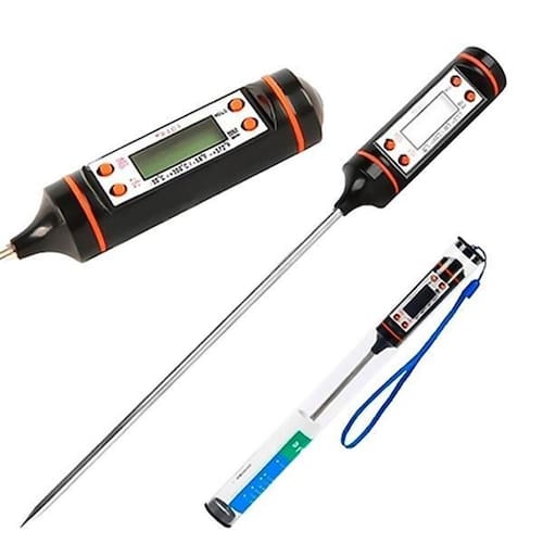 Mede a temperatura de alimento em graus célsius e fahrenheit com extrema precisão e rapidez. Perfeito para medir a temperatura de prato em banho maria no forno e outros. Seu display em LCD facilita a visualização das informações de modo claro e nítido junto de seu material de alta durabilidade e resistência que garante uma vida útil muito mais longa e durável para o produto.