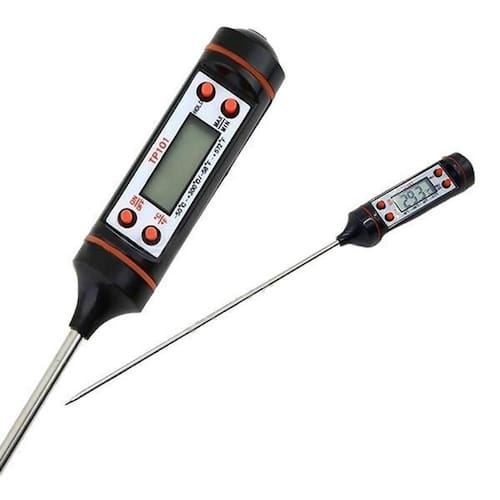 Mede a temperatura de alimento em graus célsius e fahrenheit com extrema precisão e rapidez. Perfeito para medir a temperatura de prato em banho maria no forno e outros. Seu display em LCD facilita a visualização das informações de modo claro e nítido junto de seu material de alta durabilidade e resistência que garante uma vida útil muito mais longa e durável para o produto.