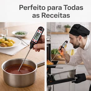 - Este termômetro digital foi desenvolvido exclusivamente para uso culinário, ideal para medir a temperatura de alimentos, líquidos, caldas e preparos em geral. Com sonda em inox de 24 cm e visor digital claro, ele facilita o controle das etapas de cozimento, garantindo praticidade no dia a dia da cozinha.