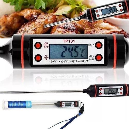 Termômetro Culinário Digital Espeto Tp101 Use para cozinhar, verificar a temperatura correta de líquidos e de alimentos sólidos.