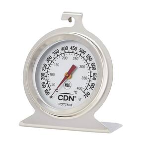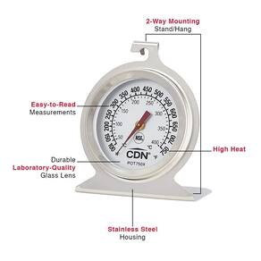 Termômetro de forno de alta temperatura CDN POT750X ProcAccurate, prateado - Elimine as suposições ao cozinhar em seu forno de alta temperatura - Mede temperaturas de 150 a 750 graus F - O mostrador grande de 2-1/4 polegadas com agulha indicadora vermelha fornece zonas de cozimento úteis - A base ampla e o gancho integrado permitem que ele seja colocado em qualquer lugar do forno - Feito de aço inoxidável de nível comercial com lente de vidro durável com qualidade de laboratório
