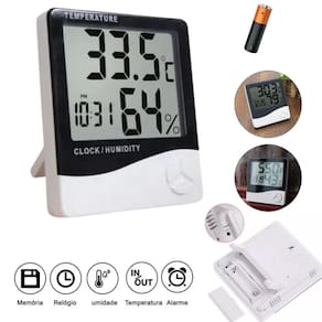 Descrição do anúncio: Monitore com precisão a temperatura e a umidade do seu ambiente com o termo higrômetro digital. Este dispositivo versátil não só mede a temperatura interna e externa, mas também acompanha a umidade do ar e funciona como um relógio e despertador. Com um design moderno e painel de lcd fácil de ler, ele é ideal para uso doméstico e profissional. O modelo fepro-mut50 é fácil de usar e configurar, oferecendo informações úteis e precisas para manter seu ambiente saudável e confortável. Conteúdo da embalagem: 01 termo higrômetro digital 01 pilha aaa Características: Modelo: fepro-mut50 Funções: medição de temperatura interna e externa, umidade do ar, relógio, despertador, e registros de temperatura e umidade mínima e máxima Design: moderno com painel lcd e letras grandes Fácil ajuste e configuração Relógio com formato de 12/24 horas Especificações: Faixa de medição: Temperatura interna: -10c a 50c Temperatura externa: -50c a 70c Umidade: 10% a 99% ur Resolução: Temperatura: 0,1c Umidade: 1% ur Exatidão: Temperatura: 1c Umidade: 5% ur Temperatura de operação: -10c a 50c Umidade de operação: 10% a 99% ur sem condensação Alimentação: 1,5v 1 pilha aaa Dimensões: 10 x 9 x 2 cm Recursos: registro de máximas e mínimas, seleção de unidade de medição c / f, alarme, calendário, indicação de carga da pilha, suporte de mesa e orifício para parede Principais perguntas sobre o produto e respostas: Pergunta 1: o que é um termo-higrômetro digital Resposta 1: um termo-higrômetro digital é um dispositivo que mede a temperatura e a umidade relativa do ar. É para monitorar as condições ambientais e pode ser aplicado em residências, escritórios, estufas e laboratórios. Pergunta 2: como funciona o termo-higrômetro digital Resposta 2: o termo-higrômetro mede a temperatura e a umidade com sensores internos. Ele também pode medir a temperatura externa através de um sensor conectado. O aparelho registra os valores máximos e mínimos e exibe as informações de temperatura e umidade em uma tela digital. Inclui funções adicionais como relógio e alarme. Pergunta 3: é fácil de usar o termo-higrômetro digital Resposta 3: sim, o dispositivo é fácil de usar com um display claro e botões intuitivos. O manual de instruções detalha como ajustar a hora, data e configurar as funções do aparelho. Pergunta 4: como posso garantir a precisão das medições do higrômetro Resposta 4: para garantir a precisão, o aparelho deve ser calibrado periodicamente. Evite expor o termômetro a fontes de calor ou umidade excessiva, e siga as instruções de calibração fornecidas no manual. Pergunta 5: é possível configurar o alarme para valores específicos Resposta 5: sim, o alarme pode ser configurado para alertar quando a temperatura ou umidade atinge valores definidos. Isso ajuda a manter o ambiente nas condições desejadas. Pergunta 6: qual é a fonte de alimentação do higrômetro Resposta 6: o dispositivo usa uma pilha aaa que dura aproximadamente 6 meses. O termômetro também possui uma função de desligamento automático para economizar energia. Marca: Não Informado Ean: 7894952968043