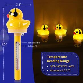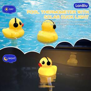 LanBlu Termômetro flutuante de piscina, termômetro solar de temperatura da água de pato, termômetro de piscina de tamanho grande fácil de ler à noite, termômetros Pro Pond, termômetros de água - Acende para ficar beruty e fácil de ler à noite. Nosso termômetro de piscina flutuante exclusivo e patenteado é um novo produto desenvolvido e produzido por nossa equipe como resultado do nosso programa Voz do Cliente. É uma combinação perfeita de luz solar decorativa de pato e termômetro de piscina funcional. O termômetro solar de piscina não apenas fica ótimo, mas a luz é projetada para permitir que você leia o termômetro depois de escurecer. - Termômetro de piscina flutuante fácil de ler com luzes de pato. A luz decorativa de pato sobre este termômetro flutuante é carregada por energia solar durante o dia e acende automaticamente à noite (também pode ser desligada, mas ainda carrega). Este é super legal e adiciona uma ótima vibração à sua piscina. Porque este garotinho mede a temperatura da sua piscina enquanto fornece uma luz quente ao mesmo tempo. Também projetamos em um laço de corda para prender o termômetro, se desejado. - Leitura precisa do termômetro. O sensor de temperatura de alta precisão é super fácil de ler e tem uma faixa de leitura de temperatura de -5 °C a 60 °C. - Feito para durar. O termômetro flutuante de temperatura da piscina possui uma classificação à prova d'água ip68 e é feito de material de construção de vinil de alta qualidade e pode suportar anos de uso repetido para durar uma vida inteira. - Amplo utilizado. Nosso termômetro de piscina tem números claros, o que facilita a leitura. Pode ser utilizado como termômetro de spa, termômetro de banheira de hidromassagem, termômetro de banho, termômetro de lago, termômetro de aquário e assim por diante. E nosso termômetro para design de piscina é produzido pela Lanblu. Este termômetro flutuante para piscina combina perfeitamente com outros excelentes produtos de piscina da marca LanBlu-, como nosso dispensador de cloro.