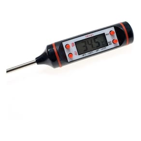 Termometro Digital Culinario Tipo Espeto Alimentos Cozinha Ficha TécnicaProduto: Termômetro Culinário Digital Espeto Alimento CozinhaEspecificações:- Mede de -50ºC a 300ºC- Escala: 0,1 ºC- Bateria 1,5V LR44 Inclusa - Peso: 75g- Tamanho: 11cm- Frequência de Medição: 1 seg, 10 seg, sleep, seleção automáticaPrincipais Funções- Ligar/desligar, centígrados/Fahrenheit e Função Hold Fixa última medição - Memória da última medição- Desligamento automático para economia de energia opcional Instruções1- Pressione o Botão Hold para fixar a temperatura quando estiver medindo e pressione novamente para iniciar uma nova medição.2 - Pressione ºC e ºF para selecionar a escala que deseja utilizar.3 - On/Off - Liga e desliga o aparelho4 - Max/Min. Mostra a maior e a menor temperatura medida Marca: Shopbr Ean: 7897230702179