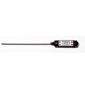 Especificações: Termômetro Culinário Digital Espeto Alimentos Cozinha - Mede de -50ºC a +300ºC- Escala: 0,1 ºC- Bateria 1,5V AG13 Inclusa - Tamanho: 23cm- Modo de economia de energia: desliga automaticamente após 10 minutos sem uso. principais botões:- Ligar/desligar, centígrados/Fahrenheit e Função Hold Fixa última medição - Memória da última medição- Desligamento automático para economia de energia Instruções 1- Pressione o Botão Hold para fixar a temperatura quando estiver medindo e pressione novamente para iniciar uma nova medição.2 - Pressione ºC e ºF para selecionar a escala que deseja utilizar.3 - On/Off - Liga e desliga o aparelho4 - Max/Min. Mostra a maior e a menor temperatura medida.