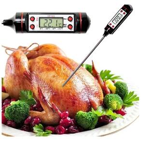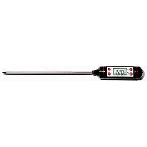 Termômetro Digital Culinário Sobre o produto: Termômetro Culinário Digital Liquido Alimento Cozinha Clink Alimentos queimados, secos, sem suculência , muito quente ou muito frio NUNCA mais, use para cozinhar, verificar a temperatura correta de líquidos e de alimentos sólidos. O termômetro culinário é uma ferramenta de medição muito útil usada para medir a temperatura interna de alimentos como carne, assados e líquidos, ou outros alimentos cozidos. Pode detectar temperaturas precisas. Especificações: Termômetro Culinário Digital Espeto Alimentos Cozinha - Mede de -50ºC a +300ºC- Escala: 0,1 ºC- Bateria 1,5V AG13 Inclusa - Tamanho: 23cm- Modo de economia de energia: desliga automaticamente após 10 minutos sem uso. principais botões:- Ligar/desligar, centígrados/Fahrenheit e Função Hold Fixa última medição - Memória da última medição- Desligamento automático para economia de energia Instruções 1- Pressione o Botão Hold para fixar a temperatura quando estiver medindo e pressione novamente para iniciar uma nova medição.2 - Pressione ºC e ºF para selecionar a escala que deseja utilizar.3 - On/Off - Liga e desliga o aparelho4 - Max/Min. Mostra a maior e a menor temperatura medida. Itens Incluso: 01 Termômetro Culinário
