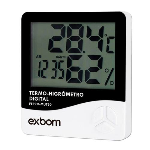 Este termo higrômetro digital é prático e versátil, constitui-se de um único equipamento que proporciona medição precisa e segura de temperatura interna umidade. Permite medições em graus Celsius ou Fahrenheit, além de memória de temperatura máxima, mínima e de umidade. Para completar a ótima funcionalidade deste indispensável equipamento, compõe-se também de relógio, despertador e display com data.