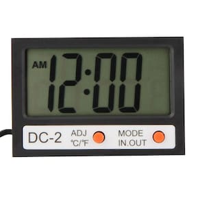 Especificacoes: Faixa de medicao de temperatura interior: -10oC +50oC /+14oF 122oF Faixa de medicao de temperatura ambiente: -50oC +70oC / -58oF +158oF Comprimento do sensor: Aproximadamente 1 metro Precisao: +- 1o; Relogio no formato: 12H ou 24H Tensao de funcionamento: 1 x 1,5V Pilha botao AG13 ; Tamanho: 5,7 cm x 3,8 cm x 1,2 cm.