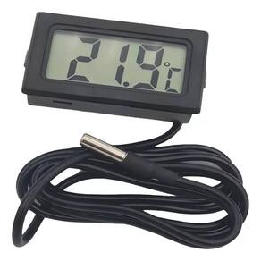 Termômetro Digital com Sonda LCD ? Multiuso para Aquário, Freezer, Chocadeira, Geladeira, Estufa e MaisO Termômetro Digital com Sonda é uma solução prática e precisa para monitorar temperaturas em diferentes ambientes, como aquários, freezers, chocadeiras, geladeiras, estufas e câmaras frias. Com um painel LCD de fácil leitura e design compacto, ele proporciona medições rápidas e confiáveis, atendendo a diversas necessidades.Características Principais:Faixa de Temperatura: -50C a +110CResolução de Exibição: 0,1CPrecisão: 1C, com exatidão superior entre -10C e 80CSonda de 1 metro: Sensor de metal ideal para locais de difícil acessoResistente à Umidade e Anti-interferência: Ideal para ambientes úmidos e de alta precisãoDimensões Compactas: 4,8 x 2,8 x 1,5 cmPeso: Leve e fácil de manusear, apenas 22gEspecificações:Alimentação: 2 Baterias LR44 (inclusas)Tela LCD: Visor digital claro e prático para leituras instantâneasConteúdo da Embalagem:1 Termômetro Digital com Display LCD2 Baterias LR44 (inclusas)Ideal para uso doméstico e profissional, o Termômetro Digital com Sonda LCD oferece controle preciso de temperatura em tempo real, tornando-o essencial para a segurança e monitoramento de diversos ambientes.