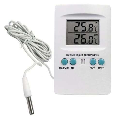 DESCRIÇÃO Termômetro digital com memória para 30 temperaturas com máx/mín e hora. É Indicado para a monitorização simultânea de duas temperaturas, podendo ser de geladeira, estufa, freezer, balcão frigorífico, ambiente, laboratório,aquário, agropecuária avicultura, suinocultura e criatórios em geral , caixa térmica, transporte de vacinas e refrigeração em geral. Conservação: Armazenar em local limpo e seco. Itens inclusos: Termômetro digital Max/Min Digital ; 1 pilha Aaa; Manual do Usuário; Medidas do produto - Altura : 11 cm - Largura: 7 cm - Espessura: 2 - Peso: 100 g Marca: Jprolab Marca: Não Informado