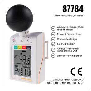 Medidor de índice de calor 87784 wbgt - seu parceiro em segurança térmica Fique à frente do térmico com o medidor de índice de calor 87784 wbgt, um dispositivo compacto e portátil projetado para garantir segurança em ambientes quentes. Com certificado de calibração rastreável a rbc, este medidor inteligente mede a temperatura do ar, a temperatura do globo e a umidade, fornecendo leituras precisas do índice de tensão térmica para ajudá-lo a gerenciar a atividade física e reduzir o risco de lesões relacionadas ao calor.Compacto, confiável e fácil de transportar - o medidor de índice de calor 87784 wbgt é o seu primeiro passo em direção a um ambiente mais seguro. Recursos Medição direta do efeito de radiação com globo preto abssensor preciso de temperatura e rhexibição simultânea de wbgt, hi, temperatura e rhmeça o térmico externo e internocampainha programável e aviso de zona de perigo led vermelhovolume de alarme sonoro ajustável 75db/60db/mudo 4 exibição do indicador de nível perigoso cuidado / cuidado extremo / perigo / extremo design vestível vem com alça de braço ou montagem em um tripéatualizações de exibição a cada 20 segundoslimite de alarme ajustávelgrande display lcdmodo in/out comutávelunidade de temperatura celsius/fahrenheitindicador de bateria fraca Parâmetros técnicos Faixa de medição Temperatura do ar: 0 50c 32 122f temperatura wbgt: 0 50c 32 122f faixa de alarme: 20 50c 68 122f temperatura hi: 0 60c 32 140f faixa de alarme: 20 60c 68 140f umidade: 0,1 99,9% ur Precisão Temperatura do ar: 0,6cumidade: 1090%rh25c: típico 5%, outros 7% Resolução: 0,1c /f, 0,1% urtamanho da bola preta: 40 mm de diâmetrotamanho do lcd: 40 a x 39 l mmtempo de estabilização: 1525min típicocondição de operação: 0 50c, 80% urcondição de armazenamento: -2050c, 90% urdimensão: aprox.70 a x 60 l x 22 t mmpeso: aprox.90gmsvida útil da bateria: aprox.300 horas Indicador de nível perigoso Cuidadowbgt: 26,7 29,4c 80 84,9f hi: 2731,9c 80.6 89,4f cuidado extremowbgt: 29,4 31c 8587,9f hi: 32 40,9c 89 105,6f perigowbgt: 3132,2c 8889,9f hi: 41 53.9c 105,7 129f perigo extremowbgt: 32.2c 90f hi: =54c 129f Conjunto completo inclui 1x certificado de calibração rastreável a rbc envio digital 1x medidor wbgt + hi2x pilhas tamanho aaa1x alça de braço2x fivelasmanual de instruções em inglêsembalagem padrão de fábrica