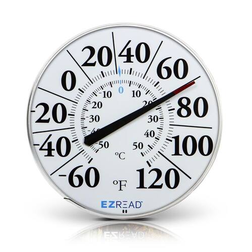 EZREAD Termômetro com mostrador suspenso 840-1210, termômetros climáticos para uso interno e externo, diâmetro grande de 31 cm, números fáceis de ler, branco básico