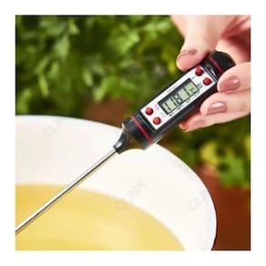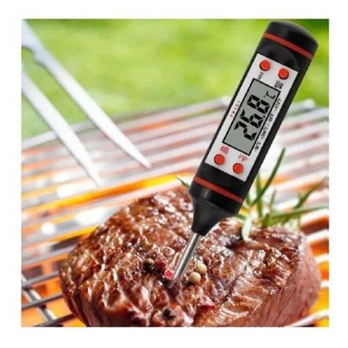 Termômetro Culinário Digital Espeto Alimento Cozinha Especificações: Mede de -50ºC a 300ºC Escala: 0,1 ºC Bateria 1,5V LR44 Inclusa Peso: 75g Tamanho: 23 x 2 cm frequência de Medição: 1 seg, 10 seg, sleep, seleção automática material: Aço inox e plástico ABS Principais Funções ligar/desligar, centígrados/Fahrenheit e Função Hold Fixa última medição memória da última medição desligamento automático para economia de energia opcional Instruções 1- Pressione o Botão Hold para fixar a temperatura quando estiver medindo e pressione novamente para iniciar uma nova medição. 2 Pressione ºC e ºF para selecionar a escala que deseja utilizar. 3 On/Off Liga e desliga o aparelho 4 Max/Min. Mostra a maior e a menor temperatura medida. Ean: 6920186680077