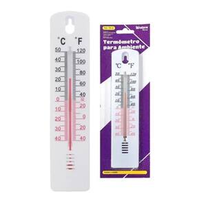 Termometro de alta qualidade na cor branca, feito com plástico, querosene e vidro. Graduação celsius e fahrenheit, com faixa de temperatura de 40c a + 50c, divisão 1c sem mercúrio.