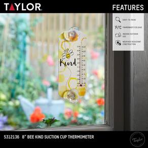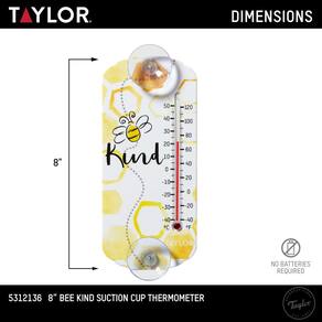 Taylor Bee Kind Termômetro com ventosa interna e externa, decoração para pátio, piscina ou garagem, 20 cm, multi