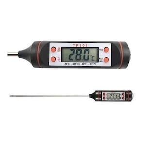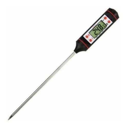 Termômetro Tp101 Culinário Digital Espeto Alimento Cozinha Termômetro Culinário Digital Espeto Alimentos Cozinha Tp101Mede de -50ºC a +300ºCEscala: 0,1 ºCBateria 1,5V AG13 Inclusa Peso: 75gTamanho: 23,5cmModo de economia de energia: desliga automaticamente após 10 minutos sem uso.Principais botões:Ligar/desligar, centígrados/Fahrenheit e Função Hold Fixa última medição Memória da última mediçãoDesligamento automático para economia de energiaInstruções1 Pressione o Botão Hold para fixar a temperatura quando estiver medindo e pressione novamente para iniciar uma nova medição.2 Pressione ºC e ºF para selecionar a escala que deseja utilizar.3 On/Off - Liga e desliga o aparelho4 Max/Min. Mostra a maior e a menor temperatura medida.Conteúdo:1x Termômetro Culinário Digital Espeto Alimentos Cozinha Marca: Não Informado