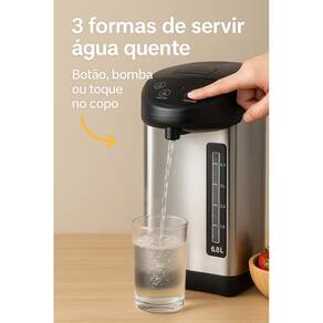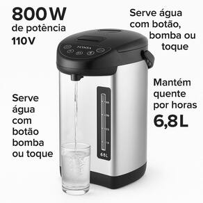 Termopot elétrico dispensador líquido quente 6,8l aço inox Voltagem: 110v O termopot elétrico é ideal para quem precisa de água quente o tempo todo com praticidade e segurança. Com 6,8 litros de capacidade e corpo em inox, é perfeito para escritórios, refeitórios, escritórios, consultórios, casa comércios ou uso doméstico . Características: Capacidade: 6,8 litros Voltagem: 110v Potência: 800w Material: aço inox padrão alimentício Especificações: Mantém a água quente por horas Proteção contra fervura a seco Luz indicadora de fervura e aquecimento Tampa com trava de segurança Formas de servir: Botão manual Toque no copo Bomba Ideal para: chá, café, chimarrão, mamadeiras Marca: Não Informado