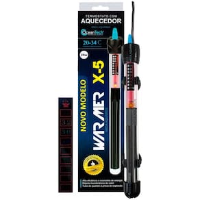 Termostato com aquecedor OceanTech 100W com marcação de temperatura lago ou aquário de até 150L - acompanha termômetro adesivo Para manter a temperatura estável e o bem-estar dos seus peixes, conte com o melhor equipamento do mercado, os termostatos com aquecedor OceanTech para aquários, são fabricados com materiais de alta qualidade, sua resistência é feita de puro níquel-cromo, que além de não enferrujar, possibilita rápida transferência de calor. Características: Resistência de puro níquel-cromo - não enferruja Tubo de quartzo de alta performance Painel de ajuste de temperatura Botão de controle de temperatura giratório Protetor plástico para a ponta Rápida transferência de calor Operação constante Totalmente submerso e à prova dágua Fácil instalação e manutenção Possui LED que indica quando o aquecedor está ligado Server para aquários de água doce ou marinhos Aquecedor e Termostato automático liga e desliga para atingir a temperatura regulada Compre nesse anúncio diretamente com um revendedor oficial OceanTech. Especificações técnicas: Marca: Ocean Tech Modelo: Warmer X-5 Potência: 100W Ajuste de temperatura entre 20ºC a 34ºC Peso: 195g Tamanho: 2 x 27 cm larg x alt Tamanho do fio: 115cm Para aquários de 70 a 150 litros Conteúdo da embalagem 1 termostato com aquecedor 1 protetor de plástico de ponta 2 ventosas para fixação 1 termômetro externo adesivo Nota: Nunca ligue esse equipamento fora da água Se notar qualquer dano no cabo de energia, não utilizar o produto, pois haverá risco de choque elétrico. : 1 ano pelo fabricante, 3 meses pelo revendedor. apenas para defeito de fabricação. Dicas de uso: Use o termostato na vertical Instale-o em local onde há circulação de água Mantenha-o totalmente submerso Antes de ligar o equipamento, verifique a temperatura ideal para a espécie mantida no seu aquário Regular a temperatura desejada por meio do botão giratório. Como instalar o termostato Oceantech Limpe a parte de dentro do aquário onde será fixado o termostato Coloque na posição vertical e fixe com as ventosas no vidro Deixe-o aclimatando por cerca de 15min evitando choque térmico Ligue-o na tomada certifique-se que a voltagem do produto é a mesma da rede . Funcionamento: Sempre que o sensor do equipamento detectar na água uma temperatura abaixo do ajustado no painel, o aquecedor ligará automaticamente, e desligará quanto atingir a temperatura desejada. Manutenção: Realize a limpeza do termostato a cada 30 dias Sempre desligue o equipamento de 15 a 20 minutos antes de retirá-lo do aquário Lave-o em água corrente e não utilize produtos abrasivos. Serve para piscina Não serve. Serve para chocadeira Não serve. Serve para aqua-terrário Não serve. Posso colocar na horizontal O fabricante aconselha apenas uso na vertical. Obrigado pela visita e boas compras ATENÇÃO Nossas imagens e textos são registrados e com direito de uso autoral controlado e reservado a essa loja e as lojas parceiras devidamente autorizadas em contrato.