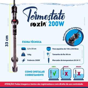 Como instalar o termostato Roxin Limpe a parte de dentro do aquário onde será fixado o termostato Coloque na posição vertical e fixe com as ventosas no vidro Deixe-o aclimatando por cerca de 15min evitando choque térmico Ligue-o na tomada certifique-se que a voltagem do produto é a mesma da rede .