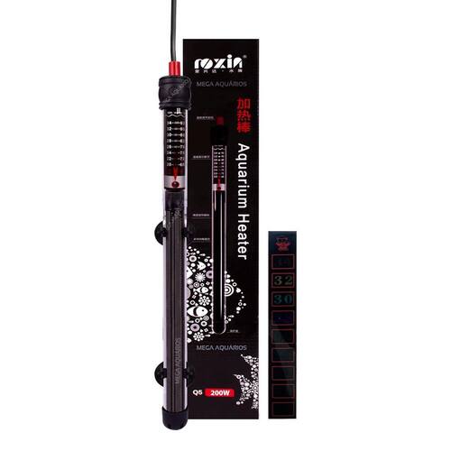 Termostato com aquecedor Roxin Q5 maior precisão 200W para aquário ou lago de 150L até 250L - acompanha termômetro externo adesivo