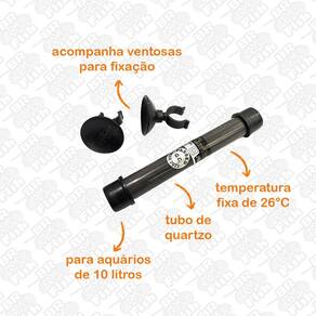 O aquecedor é feito com tubo de quartzo de material resistente ao calor, que aquece muito bem. Quando a temperatura da água no tanque é inferior a 26c, a água será aquecida a 26c, e se manter constante. - aquecedor com termostato para pequenos aquários pré ajustado em 26ºc; - ideal para nanos e aquários pequenos como os para bettas; - acompanha ventosas; - é indicado para aquários de até 10l. - voltagem: 220v Marca: Não Informado