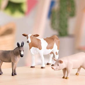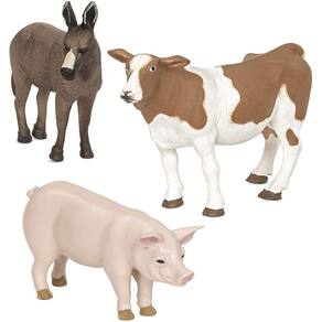 Procurando por estatuetas de animais de fazenda de plástico divertidas para rebanho até as vacas voltarem para casa? Terra by Battat animais de fazenda miniatura estatuetas de brinquedo para crianças tem você coberto! O conjunto incrivelmente detalhado inclui 3 animais de fazenda: um brinquedo de burro amigável, um brinquedo de vaca Holstein forte e um brinquedo de porco adorável. Você vai adorar suas poses is, músculos detalhados e características individuais. E, claro, esses clássicos animais de fazenda em miniatura para crianças ficam em seus próprios cascos! Este conjunto é um brinquedo educacional perfeito para crianças, mas crianças mais velhas e colecionadores também vão adorar a construção de plástico durável e detalhes realistas. Complete sua coleção de animais de fazenda para crianças com este conjunto detalhado e realista da Terra por Battat!