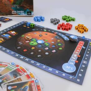 Este jogo é a versão com dados do aclamado Terraforming Mars criado por Jacob Fryxelius.