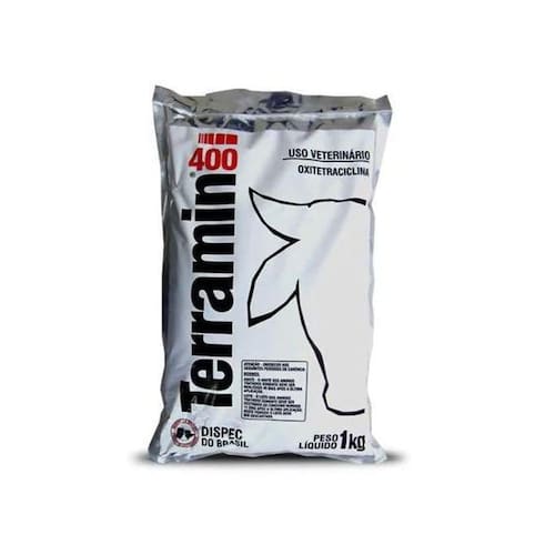 Terramin 400 - 1Kg Indicações Tratamento de infecções causadas por microorganismos sensíveis a , como cursos de diarreia de rebrota de pastagens. Auxiliar no tratamento da diarreia bacteriana sensível a ou cursos de bezerros por deficiência de cobre. Fórmula Cada 100 g contém: ...................................................... 1.100 mg Sulfato de cobalto .................................................... 48 mg Sulfato de cobre ..................................................... 500 mg Veículo .S.P ..........................................................100,0 g Modo de uso e dosagem Preventivo: 1,5 kg do produto misturados em 25 kg de sal comum. Curativo: 2,5 kg do produto misturados em 25 kg de sal comum surto de doenças, geadas, secas ou brotação de pastagens . Observação: as dosagens acima poderão ser modificadas a critério de seu médico veterinário. Apresentação Saco plástico contendo 1 kg. Marca: Dispec