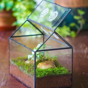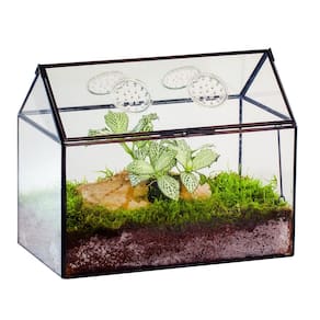 Este é um terrário geométrico em forma de casa feito de painéis de vidro selados de estanho com uma tampa de vidro oscilante com trava. Os dois painéis de vidro na parte superior são definidos com 4 pequenas folhas redondas de acrílico com orifícios de ar para permitir uma boa ventilação. Permite grande espaço para seus caracóis. Também é ideal para samambaias, plantas vivas ou répteis, insetos. Este terrário de vidro também é adequado para caracóis, insetos, insetos ou quaisquer outras mini criaturas que você pegar no jardim ou parque. Tamanho: 26 x 15 x 21 cm; O que está incluído: apenas terrário. - Este é um terrário geométrico em forma de casa feito de painéis de vidro selados de estanho com uma tampa de vidro oscilante com trinco - Os dois painéis de vidro na parte superior são definidos com 4 pequenas folhas redondas de acrílico com orifícios de ar para permitir uma boa ventilação - Permite grande espaço para seus caracóis. Também é ideal para samambaias, plantas ou répteis, insetos; você pode borrifar uma pequena quantidade de água no recipiente, mas não pode derramar água nele, ele vazará - Este terrário de vidro também é adequado para caracóis, insetos ou quaisquer outras mini criaturas que você pegar no jardim ou parque - Tamanho: 26 x 15 x 20,8 cm; O que está incluído: apenas terrário (sem plantas)