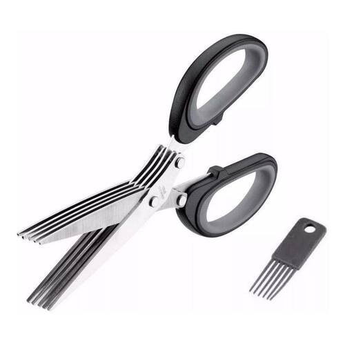 Tesoura 5 Lâminas Pra Cortar Tempero E Ervas Aço Inox