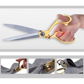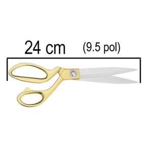 Tesoura para alfaiate de polegadas profissional costura tecido dourada Medida 24 cm 9.5 polegadas Fabricada em aço inox reforçada para costura com cabo metálico dourado. Reconhecida mundialmente, essa linha é de qualidade , esse modelo de tesoura é para , doméstico e/ou para sua empresa. Com fácil manuseio e muito confortável, possuem excepcional resistência e durabilidade. Item ideal para alfaiataria, artesanato, costura, papel, plástico e borracha. Cabo: dourado e em metal resistente. Restrições e riscos: tenha cuidado ao manusear produtos cortantes e perfurantes e mantenha-os fora do alcance de crianças. Durabilidade: indeterminada. Para melhor conservação da sua tesoura evite quedas, mantenha-a sempre seca, lubrificada e em local seguro, longe do alcance das crianças. Embalagem: em blister de caixa de papelão e plástico transparente Marca: A