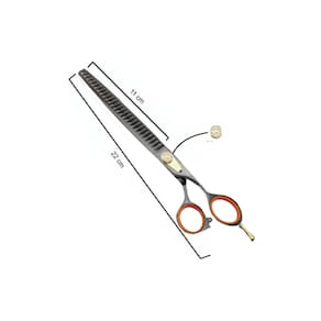 A Tesoura Bronze Dentada de 8,0 polegadas é ideal para cabeleireiros profissionais da área Pet, barbeiros e entusiastas de cortes de cabelo que buscam uma ferramenta de alta qualidade para cortes texturizados e estilizados. Perfeita para desbaste, criação de camadas suaves e detalhes precisos, esta tesoura fornece um acabamento profissional e refinadoTesoura Bronze Dentada (Tubarão) Características: Fio Navalha 8.0 Polegadas Cor: Bronze Tamanho total: 22 cm Tamanho da lâmina: 11 cm Com pedra de ajuste Acompanha estojo: SIM Marca: Elepet