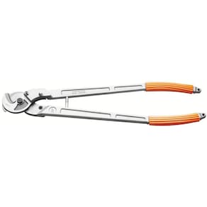 Lâminas forjadas em aço cromo molibdênio.Lâminas com têmpera total no corpo.Têmpera por indução no gume de corte.Cabos em alumínio injetado.Empunhadura em PVC injetada.Mandíbulas com faces polidas.Capacidade máxima de corte: diâmetro de 18 mm (250 mm2).Os alicates de corte são testados quanto à resistência ao desgaste do gume de corte em máquina de ensaio específica.Os alicates possuem dureza diferenciada no gume de corte e no corpo.Utilizado para cortar cabos flexíveis e maciços (em cobreoualumínio).As ferramentas são produzidas e testadas conforme normas específicas.