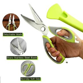 Destaques: Multiuso: Ideal para cortar carnes, legumes, verduras, descascar alimentos e até abrir potes herméticos. Lâminas de Aço Inox: Alta durabilidade e resistência à corrosão. Cabo ergonômico: Produzido em polipropileno, proporciona conforto e no manuseio. Design funcional: Conta com recursos adicionais como abridor de garrafas e quebra-nozes. Fácil de limpar: Pode ser lavada com esponja macia e detergente neutro.