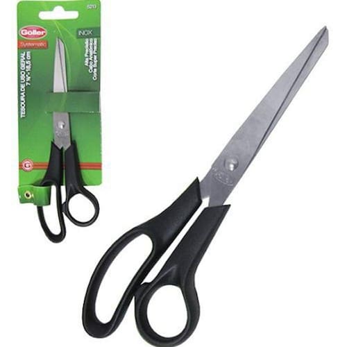 Fabricada com lâminas de aço inoxidável, resiste á corrosão, ferrugem e cola. Corta as beiradas com precisão, pois é fabricada com material consistente e tem durabilidade mais longa que as tesouras convencionais. Tamanho: 7'' Composição: Aço inox e material sintético Peso: 0,150 Embalagem: Blister com 1 unid Marca: Goller