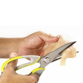 Tesoura De Cozinha 6 Funções Trinchante Em Aço Inox E Capa Com Ímã Prana Tesoura de cozinha 6 funções trinchante com capa com ímã em aço inox prana A tesoura multi-funções prana é um 6 em 1 incrível Corte, rale, abra garrafas e muito mais... E na hora de guardar, conte com uma capa protetora imantada para colocar na geladeira, microondas, etc... Quebra nozes Abre garrafas Corta carnes, ossos e cartilagens Tira pressão de potes Descama peixes. Descasca legumes Desmontável para limpeza Vai à máquina de lava-louças. Dados do produto sem embalagem: A x l x c: 1,0 x 8,0 x 22,5 cm Peso líq: 0,180 kg Ean: 7896930367855