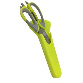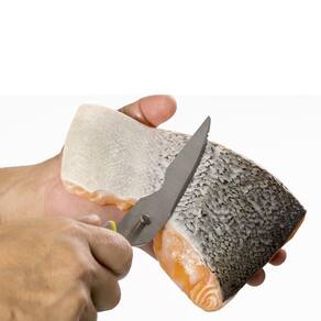 Tesoura De Cozinha 6 Funções Trinchante Em Aço Inox E Capa Com Ímã Prana Tesoura de cozinha 6 funções trinchante com capa com ímã em aço inox prana A tesoura multi-funções prana é um 6 em 1 incrível Corte, rale, abra garrafas e muito mais... E na hora de guardar, conte com uma capa protetora imantada para colocar na geladeira, microondas, etc... Quebra nozes Abre garrafas Corta carnes, ossos e cartilagens Tira pressão de potes Descama peixes. Descasca legumes Desmontável para limpeza Vai à máquina de lava-louças. Dados do produto sem embalagem: A x l x c: 1,0 x 8,0 x 22,5 cm Peso líq: 0,180 kg Ean: 7896930367855