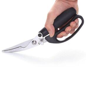 Esta tesoura de cozinha tem um design serrilhado especial, você também pode usá-lo para raspar peixes de escamas.