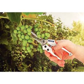Para retirar o excesso de frutos ou aqueles que não estão tão bonitos, você poderá contar com uma excelente ferramenta: a tesoura para fruta profissional Tramontina em aço com cabo emborrachado. Com uma lâmina de alta qualidade, ela corta facilmente os cabos das frutas ou pequenos galhos, e pode ser utilizada também para a poda de bonsai. Seu design e estrutura foram desenvolvidos para que você tenha o maior conforto, realizando o mínimo de esforço durante o trabalho. O cabo com acabamento emborrachado proporciona conforto ao usuário, evitando que a ferramenta machuque a mão mesmo em um uso mais intensivo. Com todas essas vantagens você não pode deixar de adquirir essa bela ferramenta. Suas mãos agradecem!