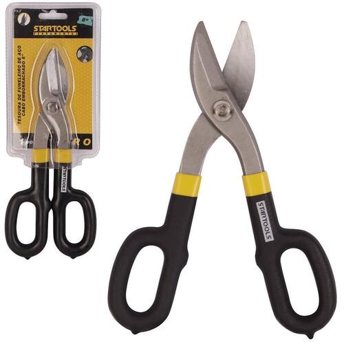 Informações adicionais: Ean: 7908348211061 Validade: indeterminada Tamanho aproximado da tesoura: 8'' 20,5cm Tamanho aproximado da embalagem: a:25xl:9,5cm Peso aproximado: 360g Tipo de produto: tesoura de funileiro cabo emborrachado pro Cor: amarelo, preto e prata Composição: aço carbono e pvc Ean: 7908348211061